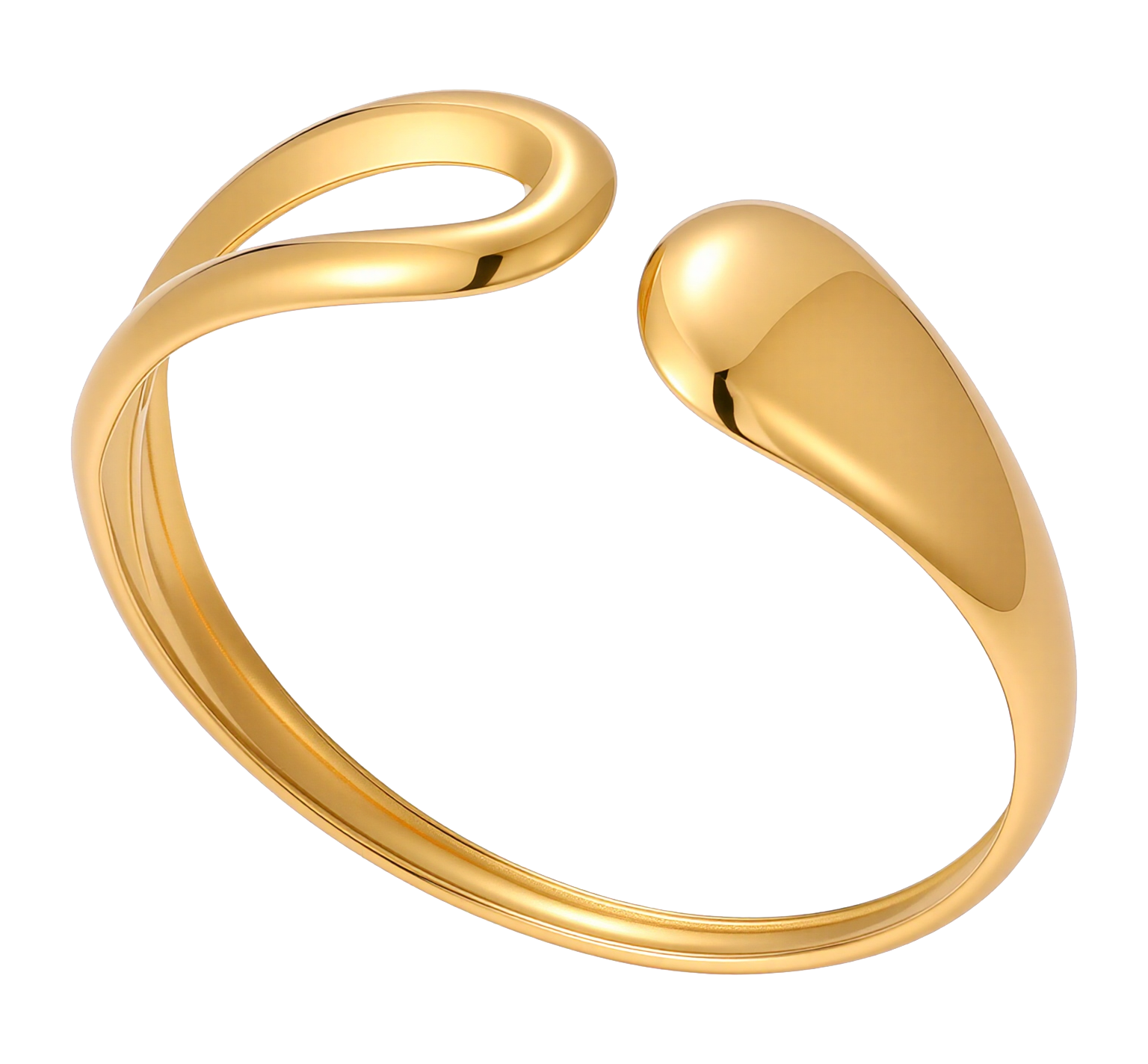 Su diseño abierto y orgánico se adapta con elegancia al contorno de la muñeca, reflejando equilibrio y armonía en cada curva.