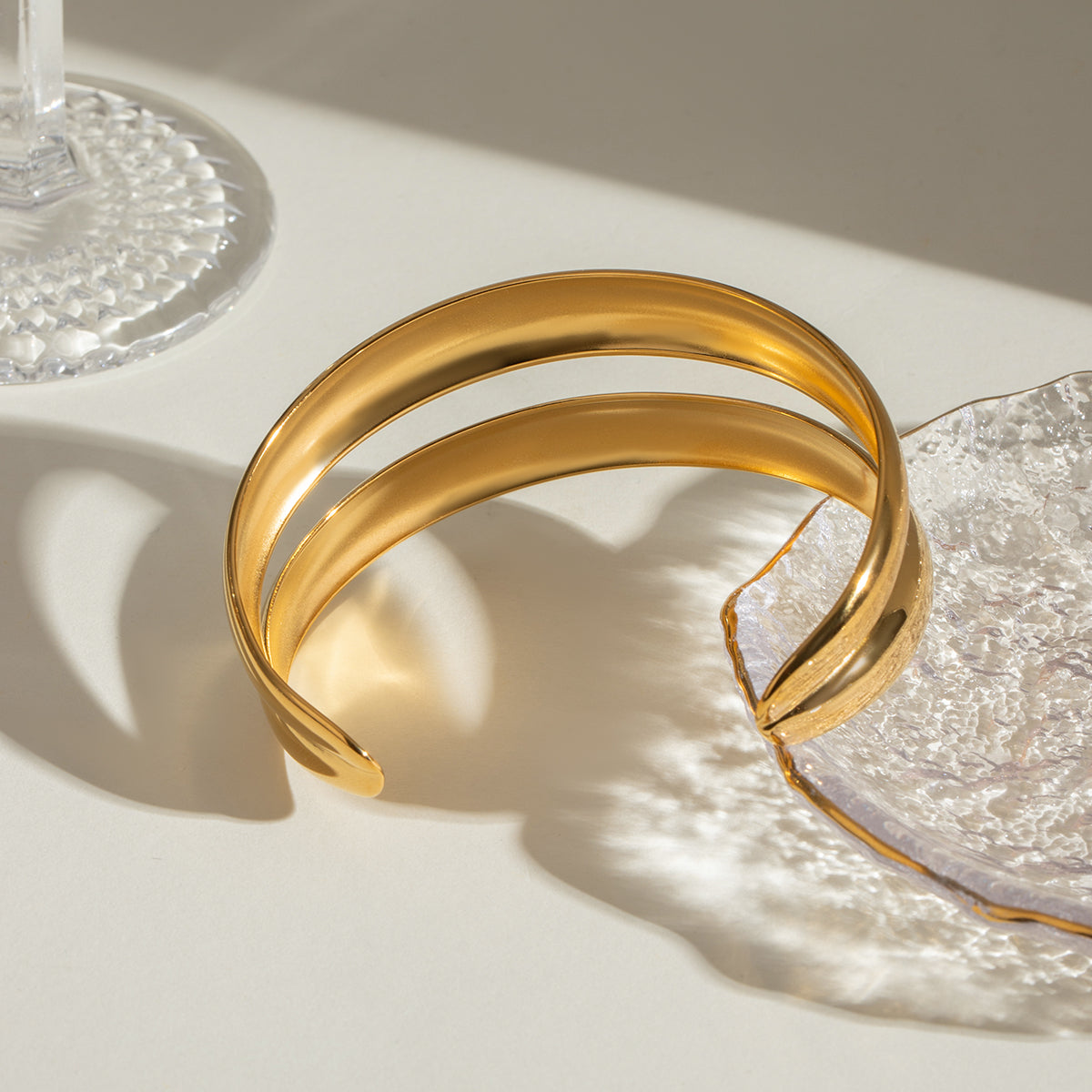 La Pulsera Doble Brillo envuelve tu muñeca con una elegancia atemporal.